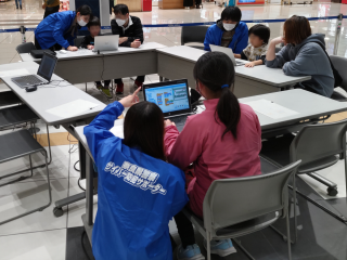 2024年2月18日(日)、イオンモール大和郡山 1階北小路コートにて「サイバーセキュリティ・カレッジ in NARA with 奈良高専」を開催しました。 当イベントはサイバーセキュリティについて学んでいただくもので、小学生以下のお子様を対象に奈良県警察と奈良高専のコラボイベントとして開催しました。 情報工学科3年生と4年生の学生による案内のもと、これまでに授業などで制作したサイバー防犯に関する動画、スライド、クイズやプログラミング体験コンテンツなどを、ご来場の方々に体験していただきました。